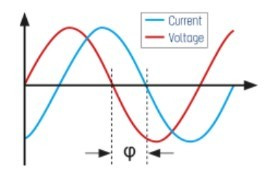 The diagram below shows voltage and current waves out of phase with each other and the angle between them, Φ, is called the Power Angle. The Power Angle is the element that relates back to the Power Triangle we discussed earlier and ties everything together.